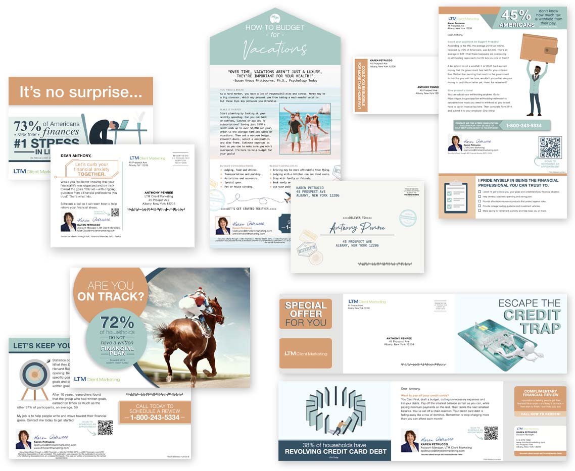 LTM Client Marketing focuses on highly-effective customized financial service newsletters, greeting cards, calendars, postcards and other targeted marketing products, from concept to compliance, and production to distribution.