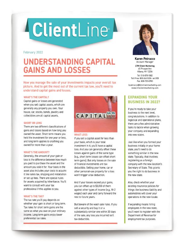 Focuses on accounting, tax, financial and business articles. This monthly newsletter is an effective practice building communication to engage both clients and prospects.